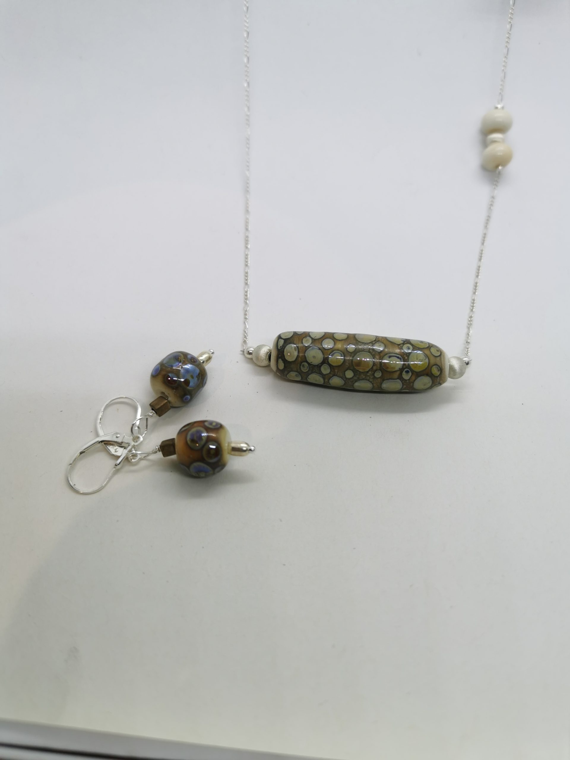 Collier et boucles d’oreilles assorties sur le site (si ça n’a pas été déjà vendu). Possibilité d’en refabriqué sur demande sans être une copie exacte.