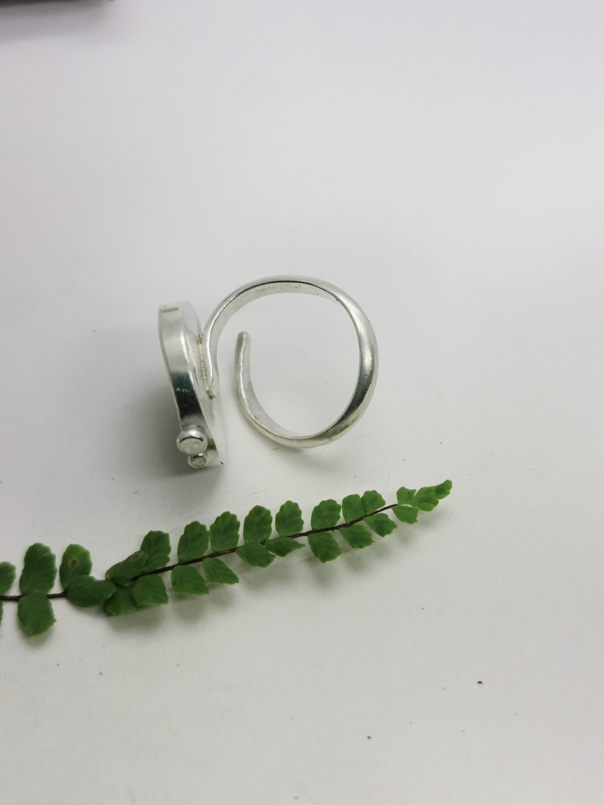 Serti argent, corps de bague ajustable en argent massif. Le tout fabriqué dans mon atelier.
